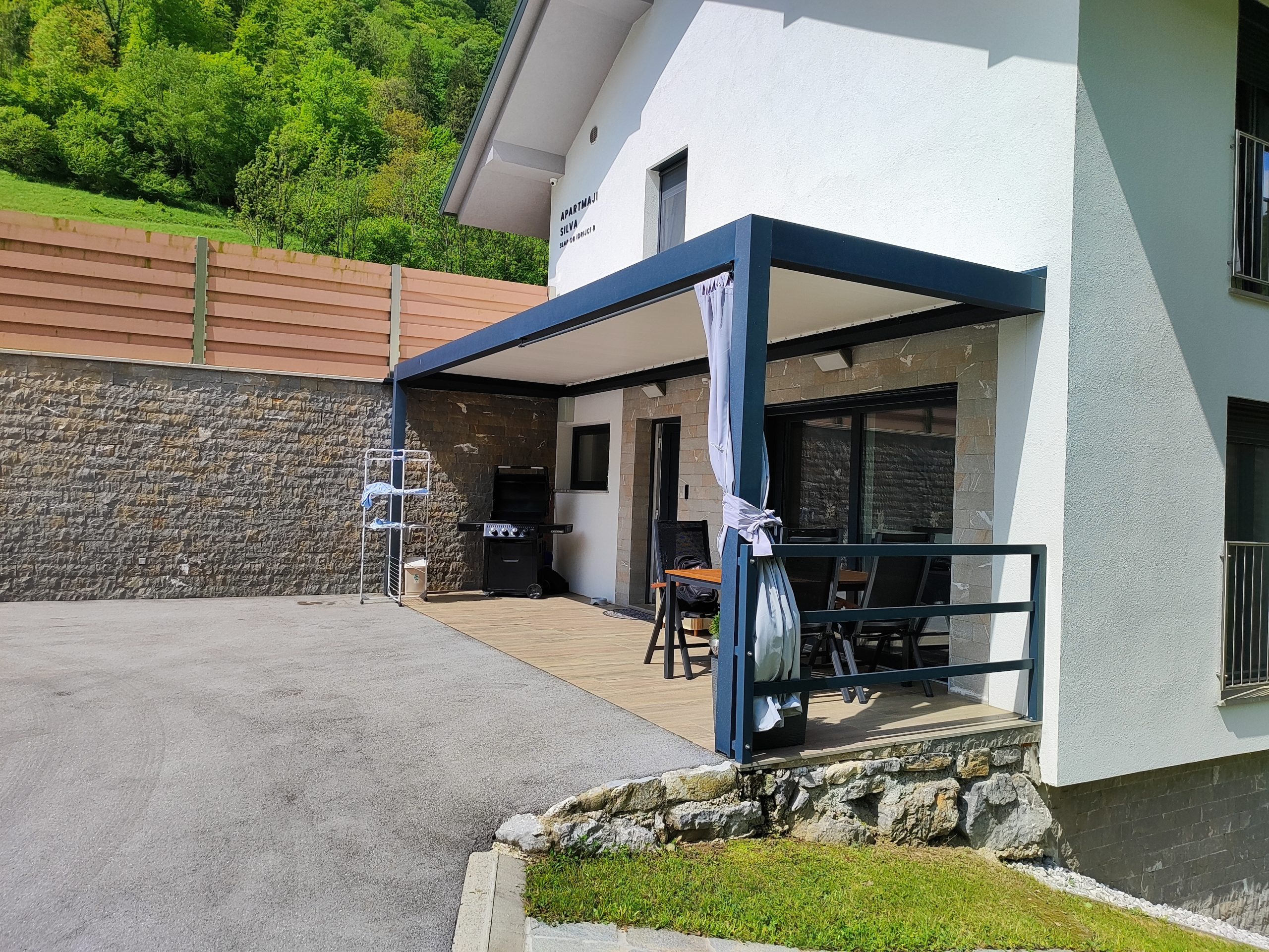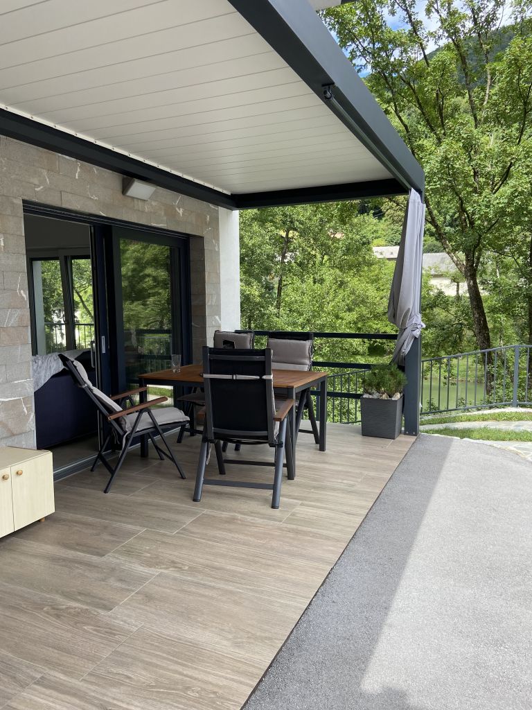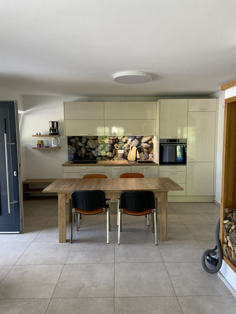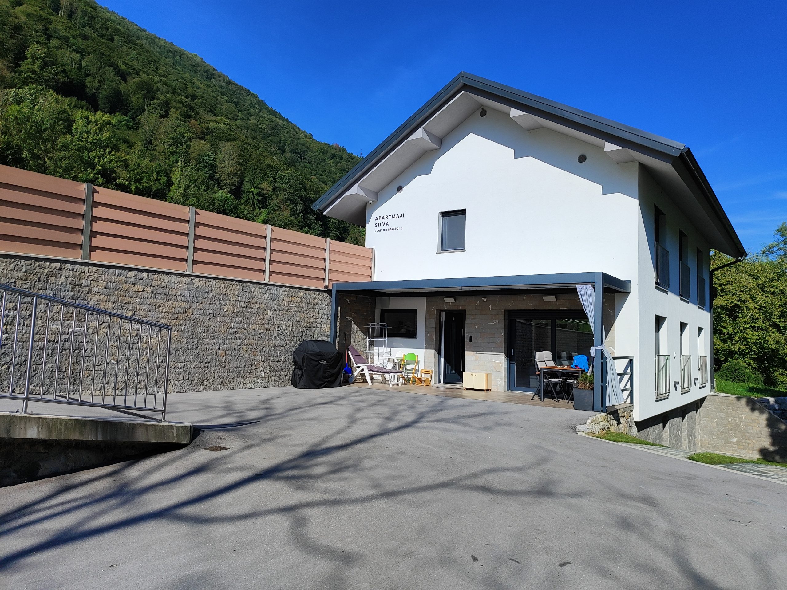 Samostojna enota, primerna za kratkoročne ali dolgoročne počitnice. Nahaja se v pritličju in je oddaljena 20 metrov od reke Idrijce. Vključuje spalnico z zakonsko posteljo in dnevno sobo z kvalitetnim raztegljivim kavčem za dve osebi. Dnevna soba je povezana z dobro opremljeno kuhinjo. Za sprostitev telesa je na voljo savna na drva in masažna kad za dve osebi. Vhod je možen s kodo, na vašo željo pa vas lahko pričaka tudi skrbnica, ter vam pripravi savno. Možen je tudi urni najem Wellnesa in stanovanjske enote po predhodnem dogovoru z lastnico.